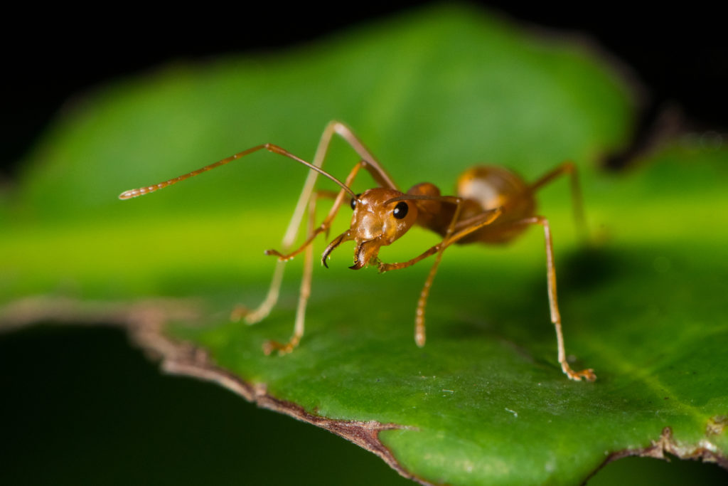 A diversity of plants have extrafloral nectaries (EFN) that produce sugary liquids. A wide range of ant species (here a worker of Camponotus nicobarensis) exploit these carbohydrates. Ants will ferociously defend this valuable resource and will attack almost any intruder found on the plant. As such, the ants and the plant form a mutualistic partnership where they exchange food for protection services.