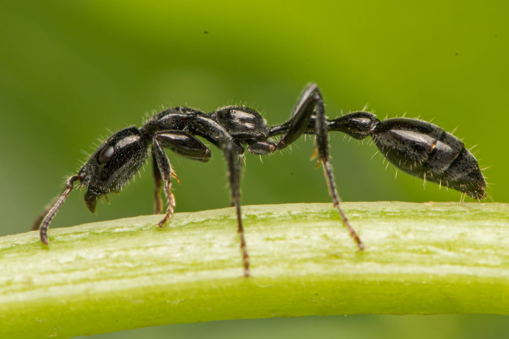 This odd-looking ant is a worker of Stigmatomma rothneyi, from the Amblyoponinae subfamily. Stranger than their looks are the behaviors of these ants. Indeed, they are commonly called Dracula ants, because their queens feed on the hemolymph of their own larvae. They also mainly prey on centipedes, an unusual food choice for ants. I photographed this individual at the Insect Biodiversity and Biogeography Lab (IBBL) where I currently work.