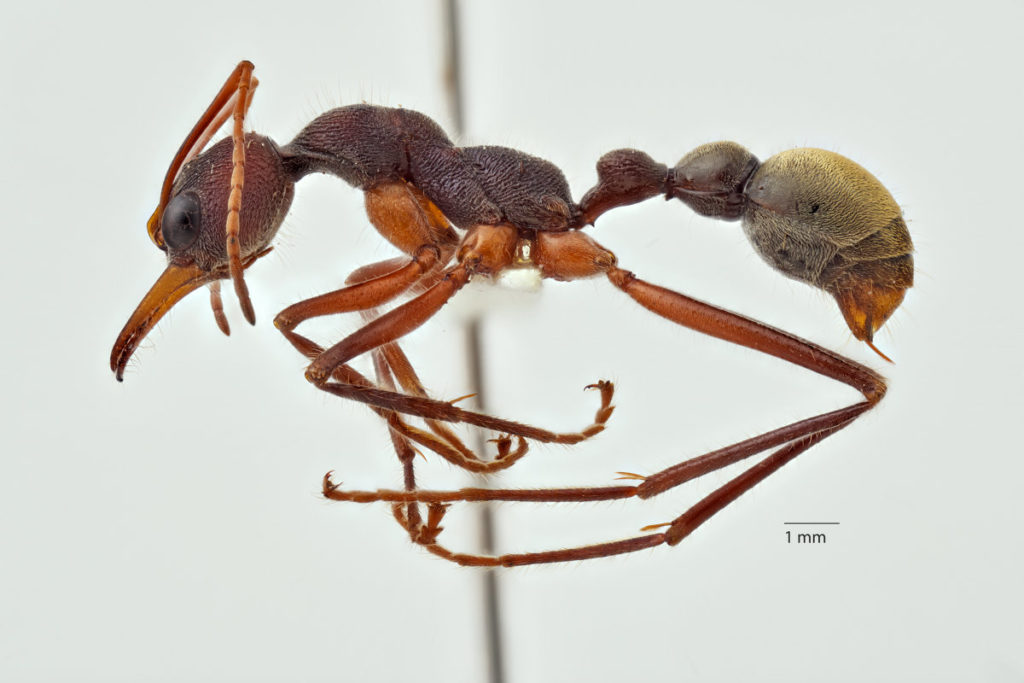Myrmecia eungellensis, one of two species of large bull ants thought to be endemic to the higher elevations of the Clarke Range.