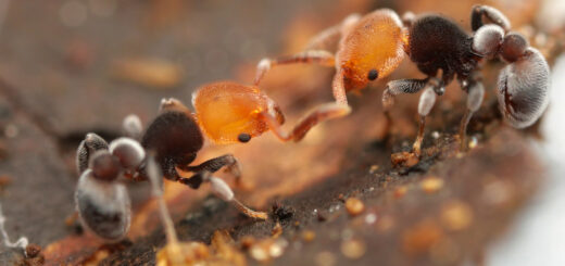 Resumption of Cataglyphis bicolor ants activity in March (15/03/2017). The workers take out the food remains stored during the previous season. A Cataglyphis bicolor‘s head worker can be seen under the legs of the worker below. (© Henine A.)