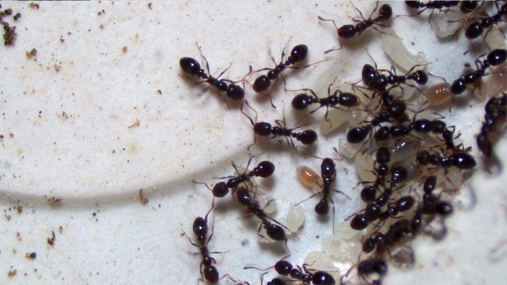 A Cardiocondyla colony in an artificial nest. (© Nana Gratiashvili)