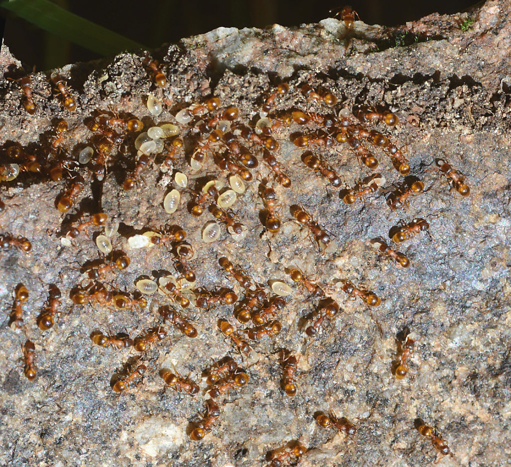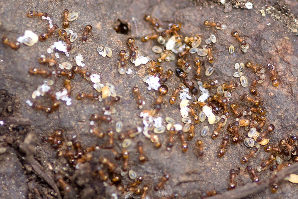 CTemnothorax rugatulus colony with a queen, her brood, and some workers (© Romain Libbrecht).