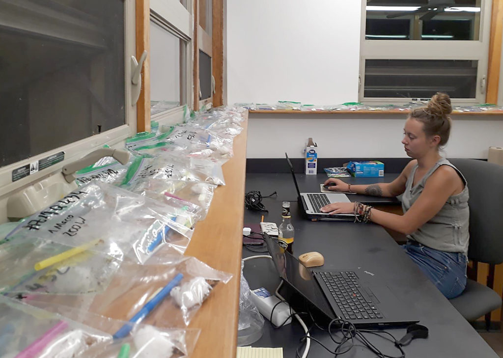 One of the laboratories in the Southwestern Research Station where we inventoried and stored the ant colonies during our ant collection trip. Ant colonies are temporarily kept in plastic bags with a straw, some wet cotton, and pieces of ham and biscuit for food. I am entering the colonies’ data on my laptop. (© Barbara Feldmeyer).